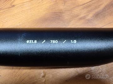 Vendo manubrio ONOFF SULFUR 1.0 780mm in alluminio queste le caratteristiche: Diametro manubrio: 31.8mm Rise: 20mm Upsweep: 5° Backsweep: 9° Length: 780mm Weight: 365g ASTM Category: 5