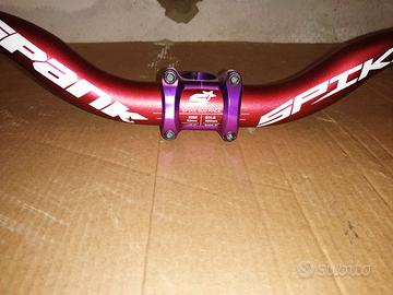 Manubrio spank spike in alluminio, 31,8, rise 50mm, tagliato a 76cm, backsweep 8°, upsweep 4°, in ottime condizioni. volendo vendo con attacco manubrio nukeproof nuovo (ormai introvabili) lungo 35mm