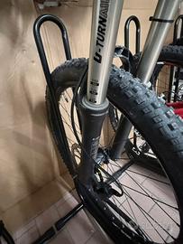 Vendo Mountainbike biammortizzata Trail o enduro in ottime condizioni. La bici ha forcella Rock Shox ad aria regolabile e ammortizzatore ad aria Fox Monarch RL posteriore, anche regolabile e bloccabile. Sella telescopica. Ideale per Trail o enduro, ha doppio pignone anteriore e 10 posteriori per poterla gestire bene anche in salita. In discesa é divertimento puro. Taglia M, in ottime condizioni. Listino nuovo 3900$.