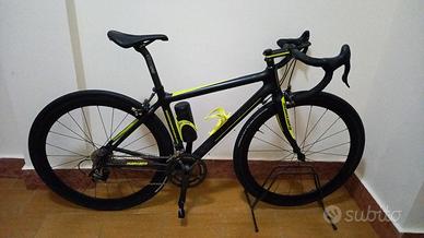 taglia s (1,60 a 1,70) Total carbonio anche le ruote, campagnolo veloce 10 vel guarnitura 39/52 pignoni 11/28 con cubicatura effetto carbonio anche sui freni catena al 70% perfetta leggera e scattante... vendo (senza pedali) perché ho acquistato una nuova bici.