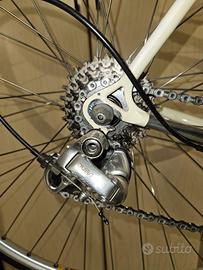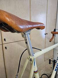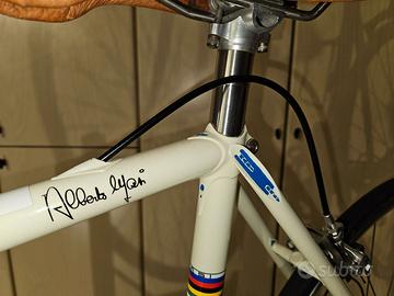 Stupenda bici MASI, modello Special, misura telaio 55x54 centro centro, (verticale 54 per ciclisti alti da 165 e 175 cm) in acciaio Columbus Cr.Mo. Sprint doppio spessore, con rinforzi elicoidali e congiunzioni, saldato a mano da Alberto Masi nella mitica bottega di famiglia sotto la curva del velodromo Vigorelli a Milano. - TELAIO: Masi Special acciaio Cr.Mo. Columbus Sprint 55x54 con rinforzi elicoidali e congiunzioni saldato a mano; - FORCELLA: Masi in acciaio con canotto da 1”; - GROUP-SET: Gruppo Shimano Dura-Ace 7900 – 8V; - SELLA: Selle Italia, Flite in cuoio; - SEAT-POST canotto sella: Ringlè mod. Moby in alluminio; - MANUBRIO: Cinelli Speciale in alluminio con nastro Brooks in cuoio; - RUOTE: Mozzi Shimano 600 – cerchi FIR EA65 in alluminio con pneumatici Michelin Dinamic Classic (nuovi) 700x22C 590,00 EURO