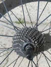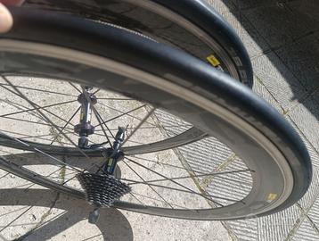 Vendo coppia cerchi Mavic Cosmic Carbon in ottime condizioni come da foto. Cerchio in carbonio, pista frenante in alluminio. I cerchi sono per rim brakes (freni tradizionali). Montano copertoncino e camera d'aria, no tubolare. Inclusi copertoncini Schwalbe. Compreso pacco pignone Shimano Duraace 11 velocità 11-28. Preferibile consegna a mano ma valuto eventuale spedizione.