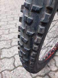 Copertone montato all'anteriore per migliorare l'aderenza in discesa. Sostituito per uno più scorrevole per praticare cross country.