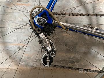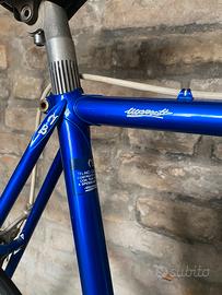 Bici Eroica o di interesse collezionistico viste anche le condizioni. telaio (alto) artigianale in tubi acciaio columbus con congiunzioni anni 80, conservato splendidamente vernice davvero bella, lucentissima e con pochissimi e leggeri segni colore blu chiaro tubo verticale centro-fine 60 cm mazzotti cesena gruppo trasmissione Zeus 2000 (montato anche sulle bici Pro dell'epoca) freni Galli pedali Campagnolo (senza gabbiette) Sella Monte Grappa Canard Shifters (manettini) e leve freno Campagnolo Attacco manubrio pipa Cinelli Manubrio Cinelli Criterium Cerchi Mavic Mozzi Campagnolo Record Tubolari Michelin (vecchi ma praticamente mai usati) Ritiro Ravenna Centro Spedisco con scatola in Italia, isole escluse (contattatemi prima) Affare!
