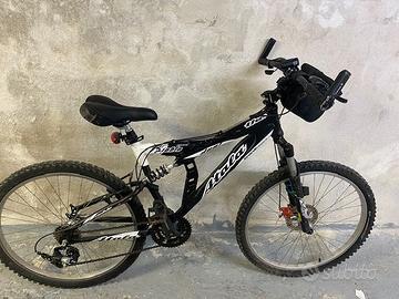 Mountain Bike Atala Diablo 21 speed, di altissimo profilo e valore tecnico. Alcuni Dati tecnici: Telaio: Alu 7005, sterzo integrato, carro Hi-Ten ammortizzato, Forcella ammortizzata , Ammortizzatore a molla D.24x150mm Serie Sterzo:Semi integrata 1 1/8 Guarnitura:Alluminio 42/34/24 Cambio:Shimano , Deragliatore:Shimano Comandi:Shimano, Freni:Ant. Disco meccanico, Rotor 160mm Post. alluminio V-brake Ruota Libera:Shimano . Tutto originale come da casa costruttrice eccetto sella mod donna
