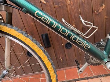 Mountain bike Cannondale vintage anni 90 (1995), con forcella anteriore ammortizzata, cambio Shimano STX RC 7 rapporti con doppia corona, ruota 26”, in perfette condizioni e funzioni, piccoli graffi. Ritiro al domicilio.
