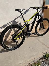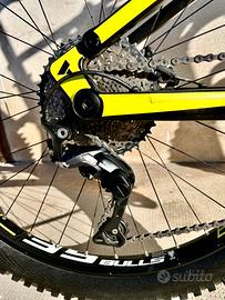 Telaio carbonio, ruote27,5x2,80, ammortizzatore rock shox rt deluxe, ammortizzatori anteriori 150, dischi freno diam 180, pastiglie freni al 50%circa, cambio xt deore, corone ant 26- 36, gomme tubles con kit salsicciotti e lattice, alza sella lev, pedali xt ,manubrio cm 73. Eventuale trattativa solo dopo presa visione