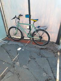 bici usate restaurata artigianalmente ruota 24 cambio Shimano freni validi portapacchi posteriore sella in pelle anatomica campanello parafanghi visibile in darsena a Viareggio restaurata artigianalmente