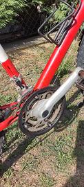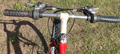 Mountain bike Atala da 26 pollici adatta per ragazzi, cavi cambi e freni nuovi, sella nuova copertoni all' 80%, proveniente da un pessimo tentativo di verniciatura di colore rosso, ha un problema al cuscinetto del movimento centrale facilmente risolvibile aprendolo pulire ingrassare e registrare, freni cantilever, cambio Shimano 7 rapporti, moltipliche a tre corone con indicazione del numero di rapporto per entrambi, cerchi in alluminio, pneumatici 26x190. Ritiro a mano su Sant' Agata Bolognese. Rif.2508041429