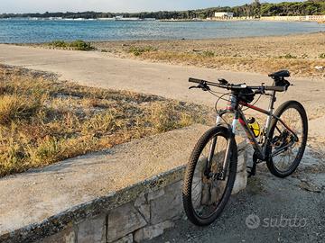 Vendo bellissima Mountain Bike Megamo Natural 10, in ottime condizioni estetiche e meccaniche. È una bici perfetta per chi vuole iniziare a fare sul serio sui sentieri o per chi cerca un mezzo affidabile e leggero. Caratteristiche principali: Telaio: Alluminio leggero con geometria moderna. Forcella: RockShox Judy (ammortizzata ad aria) con blocco al manubrio. Trasmissione: Monocorona 1x12 velocità (SRAM), ideale per affrontare qualsiasi salita senza complicazioni. Ruote: 29 pollici con pneumatici Maxxis ad alto grip. Freni: A disco idraulici per una frenata sicura in ogni condizione. Stato e Accessori: La bici è sempre stata tenuta in garage (come da foto) e pulita dopo ogni uscita. Inclusi nel prezzo regalo: Borsello da telaio porta-smartphone. Borsello sottosella per attrezzi. Portaborraccia e kit luci.