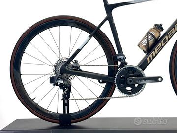 Specifiche tecniche: -Misura: M -Telaio: Megamo Carbon Advanced composite, passaggio completamente integrato dei cavi, innesto pinza freno Flat Mount e perno passante 12x142. Peso telaio 953 g -Forcella: Megamo Carbon Advanced composite, passaggio completamente integrato dei cavi, innesto pinza freno Flat Mount e perno passante 12x100. Peso telaio 325 g -Deragliatore posteriore: Sram Force AXS eTap elettronico 12v -Deragliatore anteriore: Sram Force AXS eTap elettronico -Guarnitura: Sram Force AXS 172.5 46/33 -Cassetta pignoni: Sram Force 12v 10/30 -Comandi: Sram Force AXS eTap elettronico 2x12v -Freni: Sram Force AXS disco idraulico -Disco Freno: Sram CLX-R 160mm anteriore, Sram CLX-R 160mm posteriore -Ruote: Fulcrum Wind 40db 2WF tubeless -Pneumatico anteriore: Pirelli PZero Race TLR Classic 700x28 -Pneumatico posteriore: Pirelli PZero Race TLR Classic 700x28 -Reggisella: Megamo full carbon -Sella: Syncros Tofino -Manubrio: Megamo monoscocca full carbon 100/420 -Peso in kg (approx): 7.71 -Prezzo: € 2.990,00 *Salvo errori e/o omissioni Bici da corsa usata Megamo Raise 2025 in ottime condizioni e completamente controllata Cicli Viviani è un negozio fisico e online che lavora da più di 30 anni nel mondo del ciclismo, concessionario Pinarello, Giant, Scott, Cannondale, Shimano Service Center, Campagnolo, Fulcrum, Garmin, Castelli, Sportful e molti altri. Ulteriori offerte, bici nuove e usate sono disponibili online presso il nostro sito ufficiale.