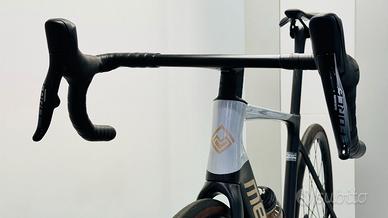 -Telaio: Megamo Carbon Advanced composite, passaggio completamente integrato dei cavi, innesto pinza freno Flat Mount e perno passante 12x142. Peso telaio 953 g