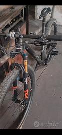 vendo mtb con telaio top di gamma ruote da 29 in carbonio , taglia S. monta cambio sram gx 12 velocità e freni cura one, dischi e pastiglie nuovi anteriori e posteriori. in configurazione tubeless pesa poco più di 7 kg. l'unico difetto è una riparazione del carbonio del cerchio posteriore. forcella fox 32 kashima factory. vendo per inutilizzo.
