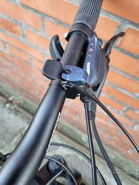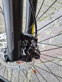La bici è montata con gruppo Shimano 3x8 e freni idraulici.