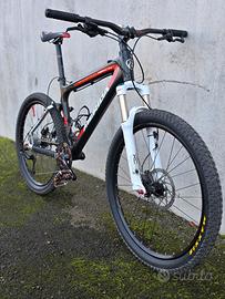Per i nostalgici delle ruote da 26, vendo a malincuore, mtb merida in CARBONIO full suspension , NUOVA, taglia M, pedali flat, reggisella carbonio toseek, manubrio carbonio Deda da 70 cm, pacco pignoni 10 rapporti e catena nuovi, comandi sram,monocorona anteriore rossa fresata cnc e paracorona, forcella anteriore meccanica usata e ancora da tagliare in base alla postura desiderata, freni a disco idraulici 180 ant 160 post. la bici ha circa 150 km .