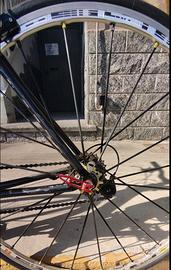 Peso 6,7 kg guarnitura fesa SLK carbonio freni ciamillo titanio telaio reggisella e manubrio carbonio cambio Shimano Ultegra 10v ganci ruota titanio.misura 51,5 Ruote mavic sis con raggi in carbonio peso copertoncino peso 1350 grammi la coppia