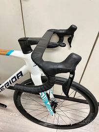 Rispetto alla bici di serie monta manubrio integrato in carbonio Deda Alanera.