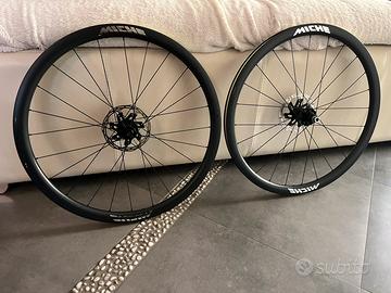 Nuove smontate da bicidi serie ruote Miche top di gamma in carbonio gia tubeless mozzi con cuscinetti ceramic speed canale Interno 21mm peso 1380 g …mai utilizzate prezzo di listino 2200 euro