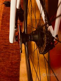 Come da foto miche kleos rd 50 ceramic speed x copertone o tubles tolte da bici nuova con garanzia da attivare corpetto shimano 12v , ritiro a mano in loco!!