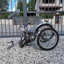 Telaio d'acciaio, piegata sta nel bagagliaio dell'auto, ruote 16x1.75 con camera praticamente nuove, usata pochissimo marca OYAMA elite, freni ad arco. Ottima per spostarsi in zone a traffico limitato.