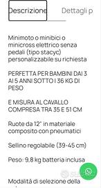 vendo mini e-bike bambino 3/6 anni,usata tenuta bene, descrizione nelle foto