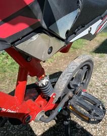 Design sportivo e accattivante, con sospensioni anteriori, pedali e cavalletto laterale.