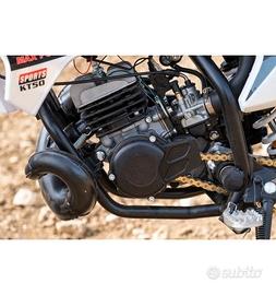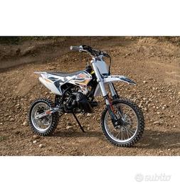 La Minicross Kayo 49.5cc 2 tempi è il modello ideale per giovani piloti che vogliono vivere l’adrenalina dell’off-road con un mezzo compatto, robusto e performante. Progettata e disegnata da Kayo, è perfetta per allenarsi in pista o divertirsi in aree private, con la qualità di una moto studiata nei minimi dettagli. Il motore monocilindrico 2T raffreddato ad aria con cambio automatico, eroga una potenza massima di 6.7 kW a 9500 rpm e una coppia di 7 Nm a 11.000 rpm, offrendo accelerazioni brillanti e prestazioni da vera competizione. L’avviamento a pedalina e la trasmissione a catena P420 con pignone 9T e corona 51T assicurano affidabilità e semplicità d’uso. La ciclistica è di alto livello: forcella rovesciata da 680 mm, mono ammortizzatore posteriore regolabile da 295 mm, freni a disco da 140 mm anteriore e posteriore, per una frenata sicura e precisa. Le ruote da 14” all’anteriore e 12” al posteriore montano pneumatici tassellati 60/100-14” e 80/100-12”, perfetti per il fuoristrada. Con dimensioni compatte (1520x680x980 mm), passo di 1040 mm, altezza sella da 720 mm e un peso a secco di soli 49 kg, la Kayo è maneggevole e adatta a piloti giovani ma già esigenti. Il serbatoio da 3,5 litri garantisce buona autonomia per sessioni di guida intense. ✅ Caratteristiche principali: Motore: 49.5cc 2T raffreddato ad aria Potenza: 6.7 kW a 9500 rpm | Coppia: 7 Nm a 11.000 rpm Cambio: Automatico | Avviamento: Pedalina Freni: Disco 140 mm ant. e post. Sospensioni: Forcella rovesciata 680 mm | Mono regolabile 295 mm Pneumatici: 60/100-14” ant. | 80/100-12” post. Peso: 49 kg | Serbatoio: 3,5 L | Altezza sella: 720 mm La Minicross Kayo 49.5cc 2T è la scelta perfetta per chi cerca un mezzo leggero, potente e affidabile, con tutta la qualità del marchio Kayo. 📌 Disponibile subito, pronta a regalare emozioni da vera moto da gara.