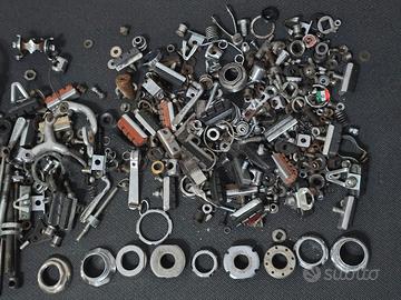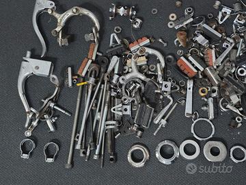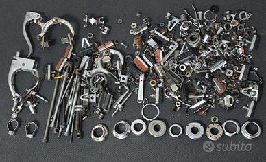 Vendo tanta minuteria per bici da corsa d'epoca. Ci sono vari pezzi di cui qualche calott serie sterzo, calotte movimento centrale, sganci rapidi, pezzi di freni o leve freno viti per guarnitura dadi pattini ghiere rondelle molle ect ect. Alcuni pezzi riportano il marchio campagnolo Rino Gipiemme Universal e Ofmega. Vendo tutto così come in foto. Non spedisco. Solo scambio a mano a Nichelino. Prezzo non trattabile. Grazie