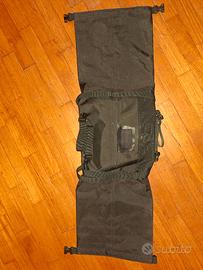 Miss Grape Bikepacking Tendril 10.7 - Borsa da manubrio waterproof. Può essere montata sia con manubri Drop Bar che con manubri da MTB (io l'ho usata con manubrio drop su bici gravel Ridley. Utilissima per contenere tutto per la notte: sacco a pelo, materassino, cuscino gonfiabile, abbigliamento... Volume massimo di capienza 17 litri. Come si vede dalla foto, nella parte inferiore della borsa ho applicato una toppa: è super resistente anche all'acqua ed è ben sigillata (l'ho usata altre volte con la toppa, senza problemi). L'ho sigillata con un mastice speciale per la riparazione delle mute a sub.