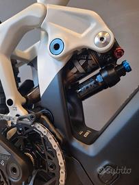 Fox Float X Factory Kashima EVOL LV, 185x55 mm. Impostazionii: leva di compressione a 2 posizioni, compressione basse velocità, estensione basse velocità, precarico aria. Attacco superiore Trunnion, boccole inferiori 30x8 mm
