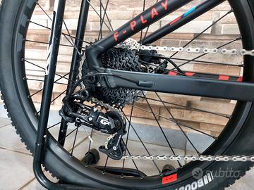 Telaio F-Play 24 Stealth Evo 6061 Alluminio, tubi idroformati, sistema di sospensione Zero, escursione 120 mm, collegamento superiore monopezzo (tramite bullone), batteria interna integrata non rimovibile, tubo sterzo conico, passaggio cavi interno HHG, movimento centrale BSA, QR 9 mm asse posteriore, compatibile con trasmissione 1x