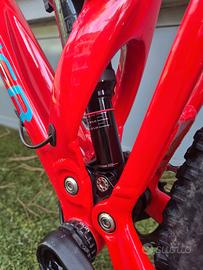 vendo bici per inutilizzo, usata un paio di volte per fare downhill. la bici presenta delle parti del telaio segnate come mostrato in foto ma del resto bici perfettamente funzionante, componenti (freni,ammortizzatori,cambio ecc...) tenute bene. catena appena lubrificata, pastiglie cambiate da poco, gomme tubeless usate poco.