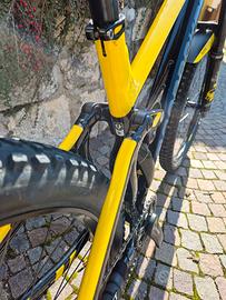 MTB Enduro monocorona 12 velocità con sella telescopica e pellicola di protezione telaio applicata.