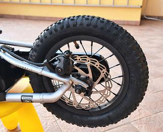 Grommy 12, un’e-bike per i più piccoli per insegnare loro a restare in equilibrio. Progettata per i rider in età comprese tra i 3 e i 5 anni, costruita con un telaio in alluminio 6061 e con un peso di soli 7,5 kg, ha un’altezza della sella regolabile tra 37 e 47 cm e un’autonomia fino a un’ora abbinata a un’erogazione di potenza completamente regolabile.