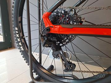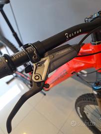 Freni: SRAM Code Bronze Stealth, pinza sovradimensionata a 4 pistoncini, disco freno monopezzo Centerline 220 mm con 6 bulloni IS, pattini in metallo sinterizzato con retro in acciaio