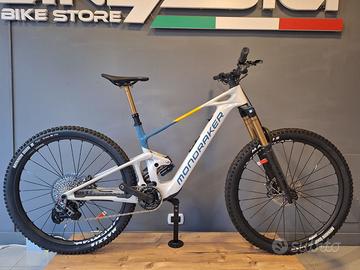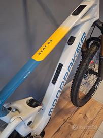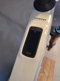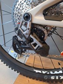 Telaio: Stealth Air full Carbon, Zero Suspension System ottimizzato per e-Bike, escursione di 150 mm, Forward Geometry, batteria interna rimovibile, perno posteriore Boost 12x148 mm, tubo sterzo conico, link superiore monoblocco, sistema passacavi interno HHG, cuscinetti sigillati con capacità di carico MAX, assi maggiorati da 15 mm, sensore di velocità forcellino integrato, esclusivi coperchi motore in plastica.