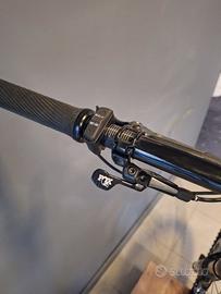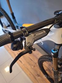 Freno anteriore: SRAM Lever Bronze Stealth, pinza a 4 pistoncini, disco freno monopezzo Centerline 200 mm con 6 bulloni IS, pattini organici con supporto in acciaio