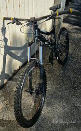 Vendo per inutilizzo Mongoose Pinn'r taglia 26" anno 2011 Ideale per ragazzo che vuole iniziare Anteriore 180 mm revisionato, molla originale sostituita con versione più rigida (85 kg) Posteriore 180 mm Manubrio sostituito Reggisella telescopico Da fare: cambio catena cambio cavo reggisella telescopico