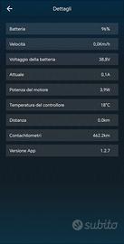350W, indicatori di direzione, 4 ammortizzatori, gomme piene, possibilità di scaricare app, 3 modalità di velocità, Cruise control, blocco/sblocco.