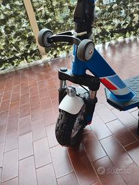 Causa trasloco in zona inadatta ai monopattini vendo Aprilia Tuareg con 200 km usato solo la scorsa estate in perfette condizioni dotato di kers per il recupero dell'energia, 3 velocità, borsa anteriore e ruote pe metterlo in piedi (utilissimo sui mezzi pubblici) scatola originale presente, pagato 450 euro oltre ad accessori, app per la gestione di diverse parti del veicolo, gomme artigliate, sospensione anteriore e posteriore, frecce,