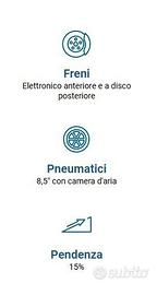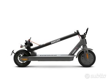 Monopattino elettrico Ducati Pro-I Evo Advanced Safety combina motore brushless da 350 W (peak power: 500 W), ruote da 8,5’’ con camera d’aria, autonomia fino a 25 km, doppia leva freno e campanello elettronico mappatura elettronica da smartphone 3 opzioni: eco ,normal e sport; antifurto localizzatore e chiave elettronica da smartphone. Solo 12 kg di peso. Il monopattino è dotato di un motore brushless da 350 W, con picco di potenza di 500 W. Questo tipo di motore offre una guida silenziosa ed efficiente, richiede meno manutenzione rispetto ai tradizionali modelli a spazzole e assicura una durata maggiore nel tempo. La combinazione di freni elettronici, freno a disco posteriore e tecnologia KERS (Kinetic Energy Recovery System) offre all'e-scooter sicurezza, prestazioni e sostenibilità. Il freno elettronico anteriore garantisce una frenata regolare, mentre il freno a disco posteriore aggiunge potenza e stabilità. Il sistema KERS recupera l'energia cinetica dalla frenata, prolungando l'autonomia del monopattino. Gli pneumatici da 8.5" con camera d'aria assicurano un comfort ottimale al guidatore, attenuando gli urti e le vibrazioni dell'e-scooter su mani e piedi qualora si percorrano strade irregolari. La camera d'aria all'interno dello pneumatico, infatti, permette un migliore assorbimento degli urti e una maggiore adattabilità alle varie superfici stradali, contribuendo così a una esperienza di guida più sicura. Il monopattino non è mai stato usato ed è disponibile la scatola originale.