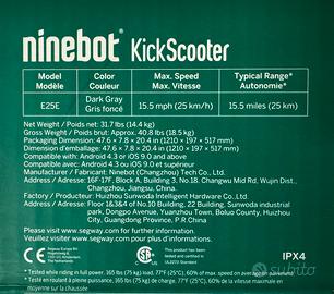 Vendo monopattino elettrico Ninebot KickScooter E25E (Powered by Segway), nuovo e mai utilizzato. Il mezzo è stato conservato in ambiente domestico, non ha mai percorso un solo chilometro ed è perfetto per chi cerca un veicolo affidabile e di qualità superiore rispetto ai modelli entry-level.