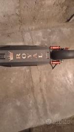 Monopattino elettrico della Royal, chi conosce il prodotto sa che è un prodotto di fascia medio alta: caratteristiche: clacson, indicatori di direzioni, bande luminose ai lati, ammortizzatori avanti e dietro, freni a disco, pedana ampia per appoggiare i piedi, 3 velocità, velocità massima 35 kilometri orari circa, autonomia circa 30/35 kilometri a seconda della velocità di percorrenza, gomme nuove, 2 telecomandi a distanza antifurto, usato pochissimo. Euro 300 non trattabili. Ultimo prezzo. Meno di 300 euro non contattatemi nemmeno. Grazie. Così non perdiamo tempo entrambi. Regalo casco di motorino aperto nel davanti.