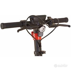 Dotato del motore DirectDrive con bollino blu da 390 W, il modello raggiunge una velocità fino a 20 km/h. Con il manubrio regolabile in altezza puoi regolare l'e-scooter individualmente e viaggiare comodamente. Allo stesso modo, il sistema pieghevole trasforma lo scooter in un compagno compatto in modo rapido e semplice. Con l'e-scooter Prophete, non dovrai più cercare parcheggio. Una staffa di metallo applicata in modo discreto permette di collegare l'e-scooter, ad esempio utilizzando un normale lucchetto da bicicletta.