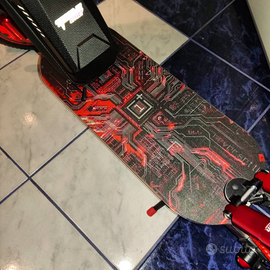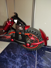 Vendo per inutilizzo questo spettacolare monopattino elettrico Xiaomi mi 365 customizzato personalmente. Ci ho lavorato con passione diversi giorni per farlo diventare questo mostro, utilizzando upgrade delle migliori marche e qualità, tanto che si fatica a chiamarlo monopattino ormai, direi che è diventato praticamente un mini scooter elettrico! Motore monorim da 500 watt, doppia batteria aggiuntiva per triplicare i km percorribili (circa 45 ora) con una ricarica, e per aumentare il voltaggio da 36 a 48 v al motore, doppia mappatura (normale 20 km orari, modificata circa 48!!!) attivabile all'accensione, centralina con piste rafforzate per prevenirne la bruciatura. Forcelle anteriori e posteriori Monorim, modificate nel posteriore con doppio ammortizzatore e nell'anteriore con ammortizzatore caricato ad aria, pedana maggiorata, adesivi completamente customizzati con riflessi catarifrangenti!!!
