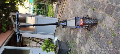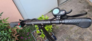 Monopattino EMG pagato circa 900 euro, manubrio largo molto stabile, frenata rigenerativa, sbloccabile ,ruote super maggiorate, ammortizzato e utile anche in strade offroad, 500w legale e potente in salite anche ripide che fa senza problemi, poco utilizzato regalo frecce mai montate, dotato di luce freni luce ant. e clacson, antifurto con sirena inseribile da transponder. Ripieghevole, molta coppia e ruote da 10 parecchio larghe. Ruote latticizzate. Doppio freno a disco potente e frenata rigenerativa, 500w 48v portata massima 150kg. Poco trattabile. Prova di Galeazzi online per capire di che classe si tratta