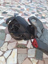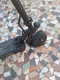 ienyrid es60. acquistato il 3.10.25 da amazon. condizioni molto buone, nessun problema, mai forato. la batteria non ha mostrato nessun difetto, in linea con le specifiche dichiarate. usato poco. doppio motore da 1200w l' uno selezionabili con un tasto. freni idraulici, molto buoni. ammortizzatore che dovrebbero essere ibridi da quel che dicono, molla ed olio, non so cosa siano cmq sono molto buoni, reattivi e morbidissimi. velocita max piu o meno 60 a doppio motore. con un tasto si torna a 25. luci decorativi effetto albero di natale :) e frecce con la figata del cicalino, anche se leggero. è stato verniciato di nero con vernici professionali, l originale non era giallo come in foto ma quasi dorato, una porcheria. vendo perche dopo essere caduto malamente con uno schifo Lamborghini Alext non voglio piu forcelle anteriori a forbice, troppo effetto wobble anche se qui è piu contenuto rispetto altri che ho avuto...tipo death kukirin :) no spedizione