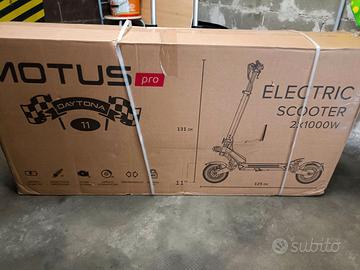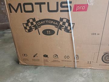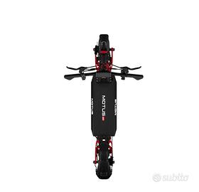 Motus PRO 11 Daytona – Prestazioni premium senza compromessi Il Motus PRO 11 Daytona è un monopattino elettrico ad alte prestazioni progettato per i rider più esigenti, che vogliono forza, autonomia e massimo controllo. I due motori brushless da 1000 W ciascuno offrono una potenza complessiva di 2000 W, garantendo un’accelerazione potente, stabilità eccellente e una guida sicura in ogni situazione. Con un’autonomia fino a 80 km e una batteria robusta da 52V 25Ah, il PRO 11 Daytona è ideale per lunghe distanze e utilizzo intensivo quotidiano. I grandi pneumatici da 11 pollici assicurano comfort e stabilità anche su superfici irregolari, mentre il doppio sistema frenante idraulico garantisce la massima sicurezza. La sospensione avanzata con forcellone posteriore assorbe vibrazioni e urti, offrendo una guida fluida e controllata anche ad alte velocità. La pedana ampia e confortevole rende i tragitti lunghi più piacevoli, e il display LCD offre tutte le informazioni essenziali: velocità, livello batteria e modalità di guida. Il sistema di illuminazione completa include faro LED anteriore, luce posteriore, indicatori di direzione e una pedana retroilluminata per una visibilità ottimale nelle ore notturne. Il blocco NFC protegge il monopattino da utilizzi non autorizzati. La certificazione IP54 assicura resistenza a polvere e schizzi d’acqua, rendendolo perfetto anche in condizioni meteo variabili. Il Motus PRO 11 Daytona stabilisce nuovi standard nella sua categoria, combinando potenza eccezionale, materiali di alta qualità e tecnologia moderna per un’esperienza di guida superiore.