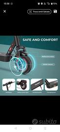 Iscooter I9 Max Upgrade 10‘ pollici 500W Scooter Elettrico Pieghevole Batteria da 10Ah per un'autonomia di 45 km, con tempo di ricarica di 4-6 ore. Nuovo motore potente alla ruota anteriore da 500W per una velocità massima di 35km/h. Tre modalità di potenza: ECO, Standard, Sport Guida premium con telaio in acciaio di qualità, dotato di grandi ruote da 10 pollici, pneumatici a nido d'ape e liquido antiforatura. Impermeabilità IP54, leader della categoria, con garanzia, per una guida affidabile anche in condizioni di bagnato Elevato. Limite di carico di 120 kg. Meccanismo di ripiegamento sicuro 'Click-Lock' per un rapido smontaggio e stoccaggio. Caratteristiche: - Motore brushless da 500W - Pneumatico: 10''a nido d'ape - Batteria: 10Ah - Tempo di ricarica: 4-6h - Doppio ammortizzatore con assorbimento Dual Shock (ruote anteriori e posteriori) - Freno anteriore elettronico EBAS - Freno posteriore a disco - Luce anteriore a LED - luce posteriore a LED - Display LED multifunzione Impermeabile: IP54 Peso netto 15,5 kg Velocità massima: 35 km/h Salita massima: 20 % di pendenza Leggero e facile da piegare Supporto con app di controllo. Altre info: Incluso: - Caricabatterie originale - Chiavi di smontaggio - Manuale d'uso e manutenzione - Garanzia Europa Si regala: - gancio di supporto bagagli - Scooter bag - manubrio maggiorato per maggiore stabilità alla guida Altri accessori a pagamento a €30,00 : - Frecce - tubo aggancia accessori - torcia con clips - porta cellulare