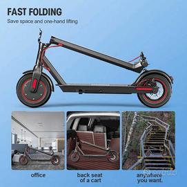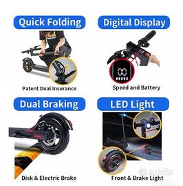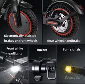 •Velocità massima: 35 km/h •Autonomia: fino a 40 km •Potenza motore: 350W •Batteria: 36V 10Ah •Tempo di ricarica: 5/8 ore •Peso: 15 kg